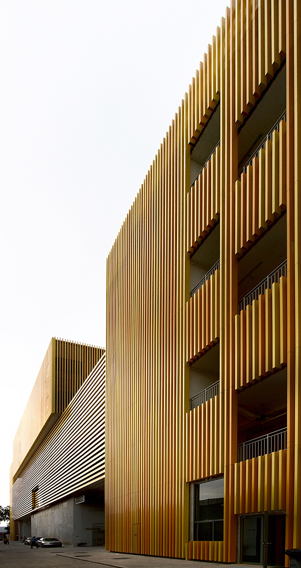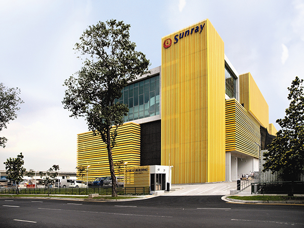 新加坡Sunray木業(yè)集團(tuán)總部辦公大樓,位于新加坡。這是一個(gè)包含職工宿舍在內(nèi)的八層建筑,建筑的材料和形狀體現(xiàn)了企業(yè)的業(yè)務(wù)范圍,車間和倉(cāng)庫(kù)的外墻采用黃色橫向鋁單板百葉窗,保證建筑內(nèi)自然通風(fēng)和充足采光,同時(shí)也避免過(guò)量的陽(yáng)光直射減少熱增益。