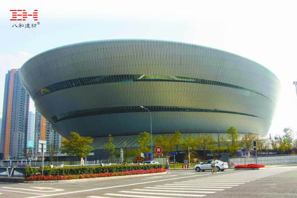 成都演藝中心是一個演藝兼體育賽事的綜合場館,為了達到良好的隔音、隔熱、防火功能,外立面采用了兩萬多塊鋁蜂窩板。