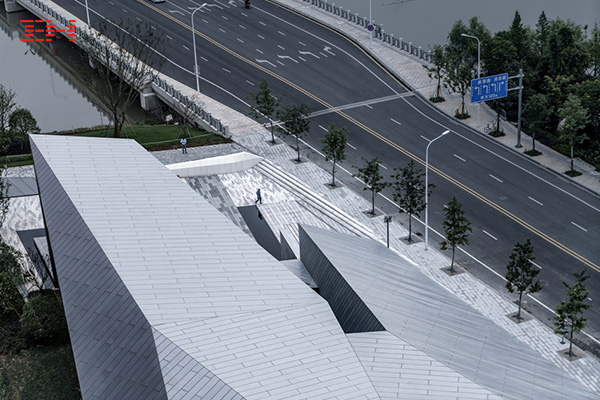 灰白色鋁單板與周圍環(huán)境色調(diào)統(tǒng)一,又格外出眾,凸顯翡翠館文化內(nèi)涵的厚實感。山石的形態(tài),雕塑化的形體,在鋁單板的裝飾下,使其成為地標(biāo)性的景點,吸引人群從而為建筑注入幾分活力。