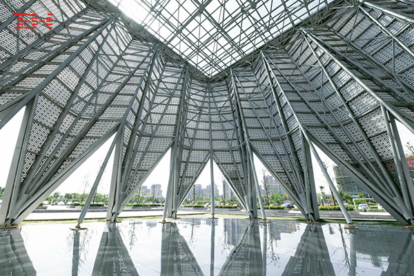 - 沖孔鋁單板的透明立面架構(gòu),天津融創(chuàng)星耀五洲售樓處