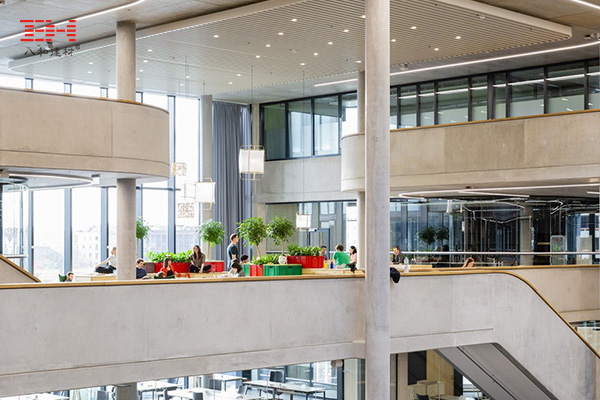 Zalando柏林辦公總部,有著總量為43000平方米的辦公空間。辦公大樓內幾處鋁方通天花裝飾設計得十分巧妙,體現了辦公大樓開放的態度和透明的建筑狀態。