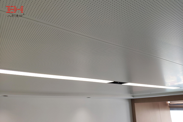 鋁蜂窩板在面板沖孔,面板的下再加一層吸音蜂窩芯,然后復合加工成勾搭式鋁天花。