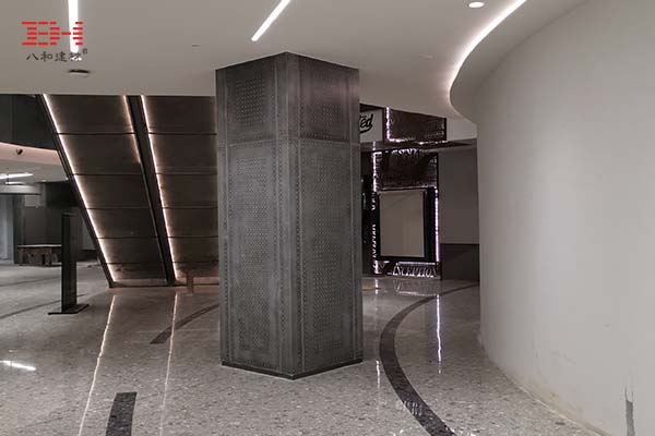 尤其是八和建材做舊鋁單板在護欄、包柱、天花、藝術墻面上的應用,把古典藝術文化的基調確定下來,再在此基礎上進行現代藝術創作。