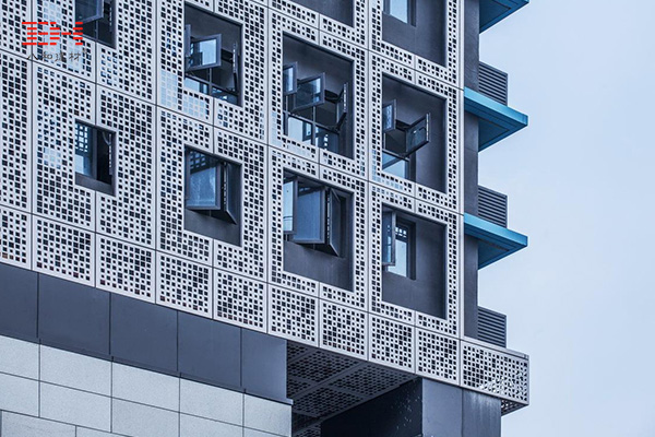 方孔鋁單板不同的洞口變化韻律使堅(jiān)硬冰冷的建筑附上了一層溫柔與綠意。方孔穿孔鋁單板讓堅(jiān)硬冰冷的建筑立面似乎活躍了起來(lái),為城市帶來(lái)了新的生活與空間。年輕、律動(dòng)、時(shí)尚,佛山兆陽(yáng)O³大廈像一面充滿(mǎn)綠意的二維碼佇立在禪城區(qū),成為一個(gè)充滿(mǎn)青春活力的新型城市坐標(biāo)。讓人們可以享受簡(jiǎn)單、時(shí)尚、自由、綠色的生活方式。