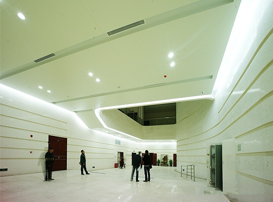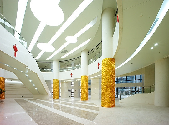 福州工人文化館內墻天花吊頂使用了鋁蜂窩板,目的是讓這個樓面達到一個高度的平整性,同時在開闊的空間,鋁蜂窩板可以達到不錯的消音效果。