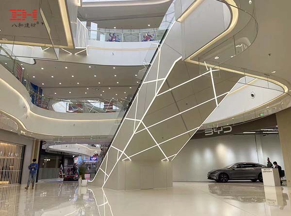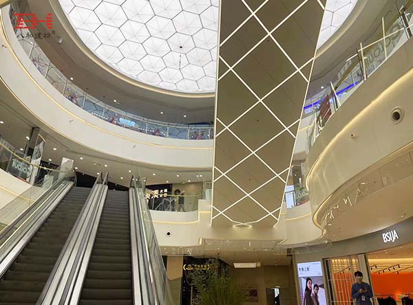 應(yīng)用產(chǎn)品:八和建材扶梯鋁單板、商場中庭鋁單板等
