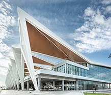青島國際郵輪母港造型設計取自于“風帆”,從外形上看去就好似一對對海上的風帆和那翹起的船頭,這正是設計師從青島“帆船之都”的美名中獲得的靈感。白色鋼結構框架之間所映襯的藍色天空和褐色的仿木紋鋁天花吊頂交替出現,陽光滲透展現出有規律的結構美感,讓整個空間變得生動而溫暖。