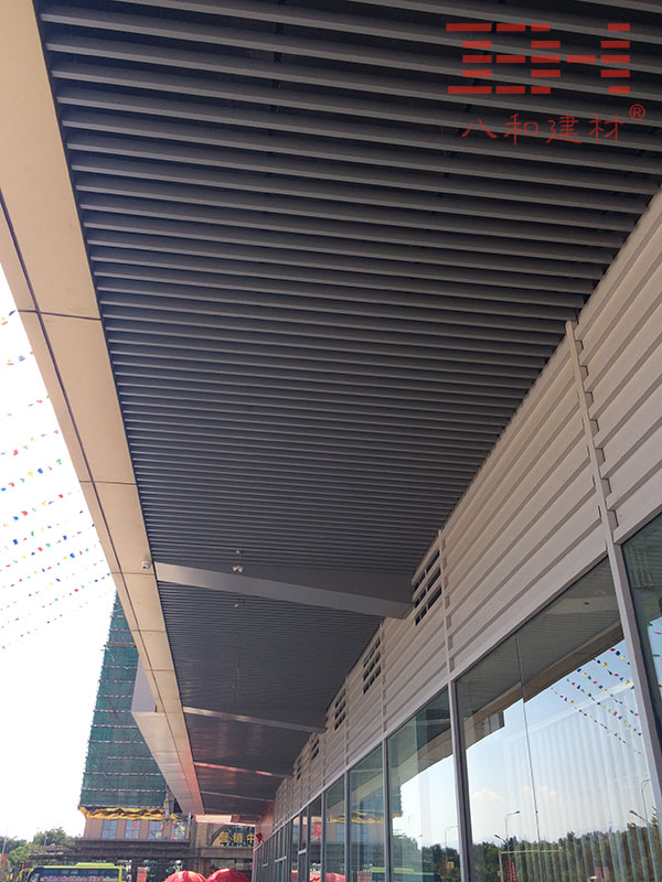 梅州市客都匯商業(yè)文化廣場(chǎng),是梅州市第一個(gè)商業(yè)綜合體,集購(gòu)物、休閑、文化、娛樂(lè)、餐飲為一體的現(xiàn)代化體驗(yàn)式購(gòu)物中心。它也是梅州這座城市的超市名片。 梅州客都匯在建筑裝修上同樣有別于同級(jí)別的商業(yè)綜合體,例如屋檐天花,使用的是1.5厚的鋁方通,壓鑄成型,能夠適應(yīng)戶外一定的抗壓能力,表面聚酯粉噴涂處理,色澤好。其實(shí)鋁方通是現(xiàn)代很流行的吊頂金屬材料,成本低是一方面,而鋁方通由于體積關(guān)系,可以拼裝出不一樣的藝術(shù)圖案,讓商業(yè)綜合體更具備地區(qū)標(biāo)志性。