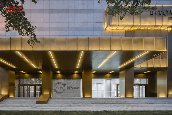 一系列的設計策略包括:使用更為現代的色彩及材料,讓建筑穿上一層金屬材料銅色金屬羽衣(穿孔鋁單板),金屬詮釋寶鋼的新活力,重塑商務美學,用從過去沉重的鋼,到如今輕盈靈動的“鋼”,從保守蛻變到開放,暗喻寶鋼強勁的創新力。