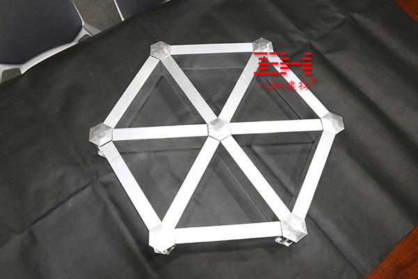 3. 再把鋁方管卡在六邊形中間連接件上;