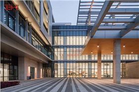 合肥京東方醫院的設計風格簡約且明確,外裝飾面采用了3mm厚氟碳鋁單板,建筑整體與立面造型以簡潔干凈,高科技感強烈的線條為主。