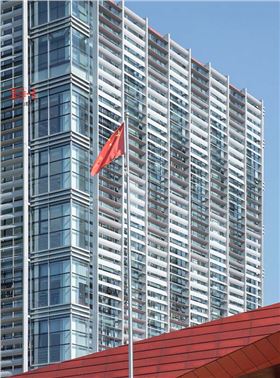 作為警察學校對外的主要界面,這樣的建筑立面具有極高的標志性和很強的辨識度。此外,紅色的折形金屬屋面與規律漸變的遮陽鋁百葉,也作為建筑造型的主要元素而貫穿了整個校園建筑群,形成統一的建筑意象。