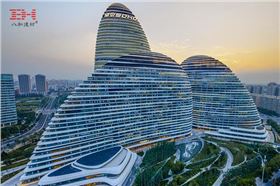 望京SOHO是一個(gè)龐大的商業(yè)辦公綜合體,分為3棟高層建筑,集辦公和商業(yè)一體。望京SOHO幕墻由玻璃幕墻和鋁單板幕墻構(gòu)成,鋁板幕墻由平面鋁板和雙曲鋁板配合,保證了鏈接的流暢、圓滑。