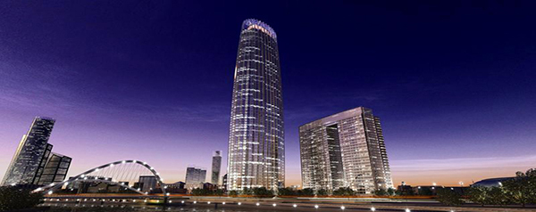 安徽國際金融中心的255米超高層國際5A智能寫字樓是安徽地標。安徽國際金融中心60層5A智能超高層寫字樓大堂設計為900平方大廳,挑空達15米,為安徽之最。項目外立面整體采用高級石材結合中空玻璃,垂直豎線條分割立面,吊頂采用高端鋁單板吊頂材料,將安徽國際金融中心拔向天空,凸顯穩重,挺拔王者之氣。