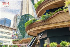 木紋鋁方管為打造廣場立體綠色墻面景觀體系起到了不可或缺的作用,凸顯了生態園林高端商業地標的定位。鋁方管仿木紋的暖色調,為街區生態情趣體驗的定位,以及兒童娛樂、休閑等營造出了愜意的氛圍。