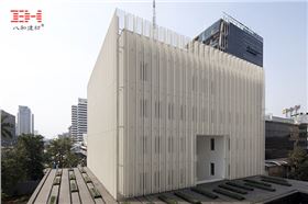 在基座之上,一個是大臣官署,另一個是學院辦公室。關于材質方面,在基座火山石的暗調和頂上兩個體量的明調之間形成一種非常重要的對比。從安全和可達性角度為確保精確,大臣官屬體量由沖孔鋁單板覆蓋保護,沖孔鋁單板提供了光影、私密性和安全感。