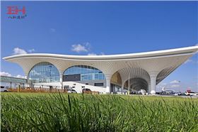 雙曲鋁單板還運用在綿延的雨棚上,銜接新舊航站樓,融為一體。T2航站樓波浪式屋面曲面造型,由大量平面鋁單板、單曲鋁單板、雙曲鋁單板、異形鋁板配合定制的龍骨節點構建而成,展現出了建筑的藝術性和本地特色風情。