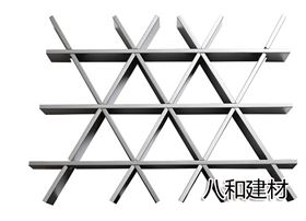 1.三角形格柵天花是用直線構畫成的幾何圖形,金屬三角形格柵天花簡約、通透、強烈的三角形幾何符號與金屬材質的完美結合,充分的展示出后現代元素的簡單、時尚、個性。