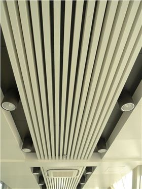 上圖為50*100mm白色鋁方通,位于過道天花中間,有導向性視感。