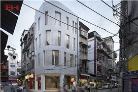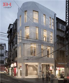 設計師希望改造之后的外立面能為厚重陳舊街道帶來輕盈明快的感覺,同時又保持與傳統建筑形態的內在聯系;于是設計師將原有外立面更換為鏤空鋁單板,并以廈門傳統紅磚的尺寸作為模數,以求用現代材質對傳統形態進行表達。同時,結合日常光照數據,將孔洞進行了參數化運算,由下至上形成疏密漸變,以保證一天中各個時段每層樓面的采光及保溫。