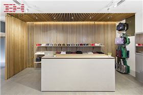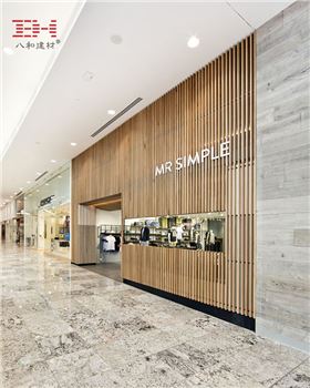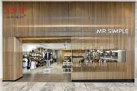 澳大利亞Mr Simple 商店外立面的木板和店內后方的墻壁,還有隔離墻、天花板都使用了同一種建筑材料,看起來就像是通往試衣間的一道走廊。試衣間采用柔和的藍色,可以讓人從周邊天花板的白色和墻壁的灰色之中找到一些放松的感覺。Mr Simple顯著的產品特性要求每一件家具都必須定制,以便能夠準確完美的展現出所有的產品和類別,因此,專門配備了鋼制的大桌子還有一系列的小桌子,這樣才能為品牌打造出強大的視覺營銷效果。與此同時,還有定制的木地板和專門的墻上設備,都是用鋼和膠合板做的,這樣人們可以更靈活的陳列和展示產品。