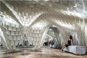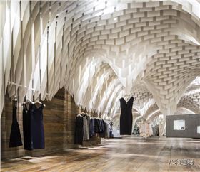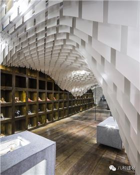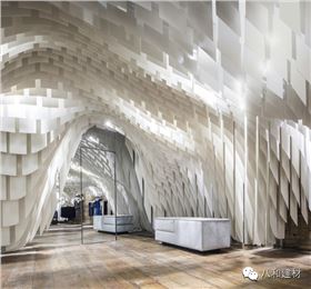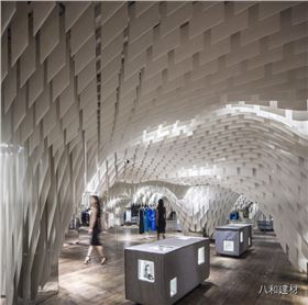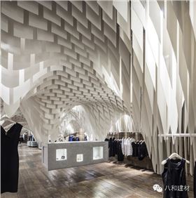 重慶s.n.d時尚店,所有的設計元素都將“從天而降”- 因此顧客將有充足自由的購物瀏覽空間而不被一般店鋪底面中所擺放的家具和銷售單品所阻礙。一個個可拉伸有張力的天花吊頂仿佛真實地被各類物件的重量所影響從而垂墜了下來。