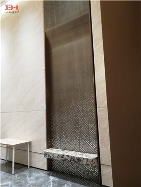 不規(guī)則沖孔鋁單板弧形造型加背光效果,'璀璨星光"散落近四米高的墻面,仿古氟碳烤漆典雅且端莊。