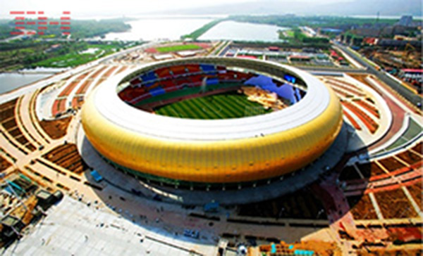 三門峽文化體育中心被譽為“金盆聚寶”的獨特建筑,因會議會展中心和體育場兩大主體建筑的建筑形態而得名,既象征了三門峽市豐富的黃金礦產資源,又體現了現代設計對古代文化的尊重,與黃河生態環境充分融合。此外,建筑設計方案還融入了三門峽“天鵝之城”的的表現元素寓意。會議會展中心建筑外墻采用玻璃幕墻,內罩與體育場同色的鋁蜂窩板,并在屋面設置了錯落有致的天鵝形天窗。