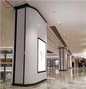包柱鋁單板可用于裝飾圓柱、方形柱、錐形柱等各種柱子造型。包柱鋁板表面可做鏤空設計、圖案沖孔、加不銹鋼飾條點綴,搭配不同的表面處理工藝在燈光的配合下可以起到很好的裝飾作用,是各大商場、酒店大堂、車站、各類場館不可或缺的裝飾材料。