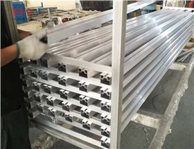 陽極氧化鋁型材生產(chǎn),主要工序流程:磨具擠壓、弧形拉彎、紋路拉絲、陽極氧化著色、精密切割、組裝。
