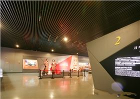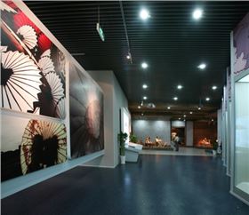 中國(guó)刀劍傘博物館室內(nèi)天花裝修工程,整個(gè)室內(nèi)包括大堂天花、過(guò)道天花都使用了黑色U型鋁方通和仿木紋轉(zhuǎn)印鋁方通,總工程面積為7000平方米。