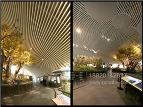 項目位于杭州西溪國家濕地公園內(nèi),由日本建筑大師磯崎新設(shè)計,總建筑面積20,000多平方米。館內(nèi)分設(shè)“序廳”、“濕地與人類廳”、“中國廳”和“西溪廳”四個主題展廳。“中國廳”將單翼型遮陽產(chǎn)品應(yīng)用于吊頂空間,構(gòu)造出獨特的水滴形開透式空間效果。