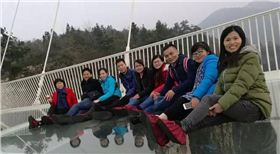 雖然橋的兩側并不全是透明的玻璃,但不能否認這座玻璃橋對那些恐高的人的挑戰性,因為同行的一個小伙伴為此嚇哭了。