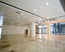 寫字樓大堂相對注重大氣,從而體現建筑品質感。寫字樓大堂空間大,運用獨特的吊頂裝飾效果,多使用造型鋁單板吊頂產品和組合式天花,整體富有層次感。