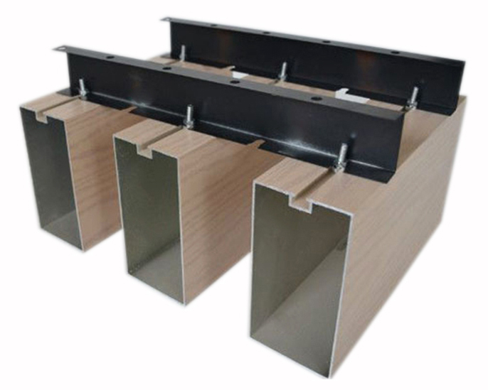 凹型槽鋁方通直接用螺絲固定凹型槽鋁方通龍骨,然后再用螺絲把凹型鋁方通固定。